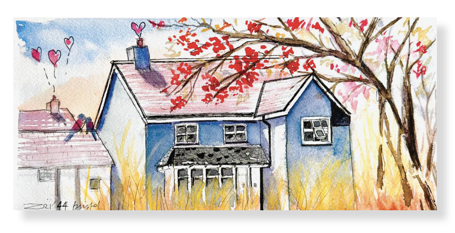 This painting depicts a home filled with ๐ด๐ถ๐ฌ๐ฐ๐ฐ๐ฏ (peace), ๐ฎ๐ข๐ธ๐ข๐ฅ๐ฅ๐ข๐ต (love and affection), and ๐ณ๐ฆ๐ฉ๐ฎ๐ข๐ต (blessing). The flowering trees bend over the roof in the warm glow of the sun in ๐ณ๐ข๐ฃ๐ช, the season of spring. This signifies happiness which is the true meaning of ๐ด๐ฉ๐ข๐ข๐ฅ๐ช (a Farsi word derived from ๐ด๐ฉ๐ข๐ข๐ฅ meaning happy).